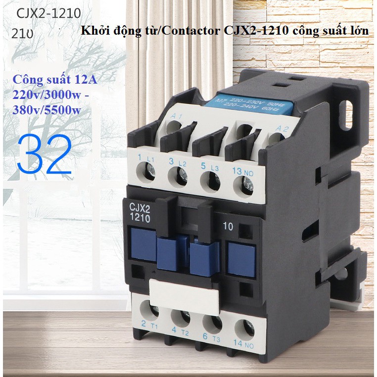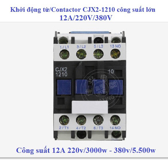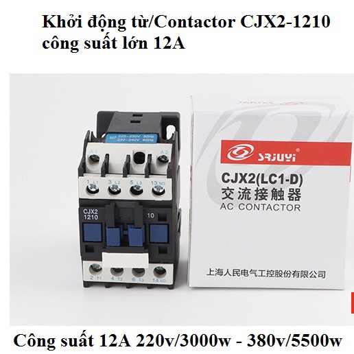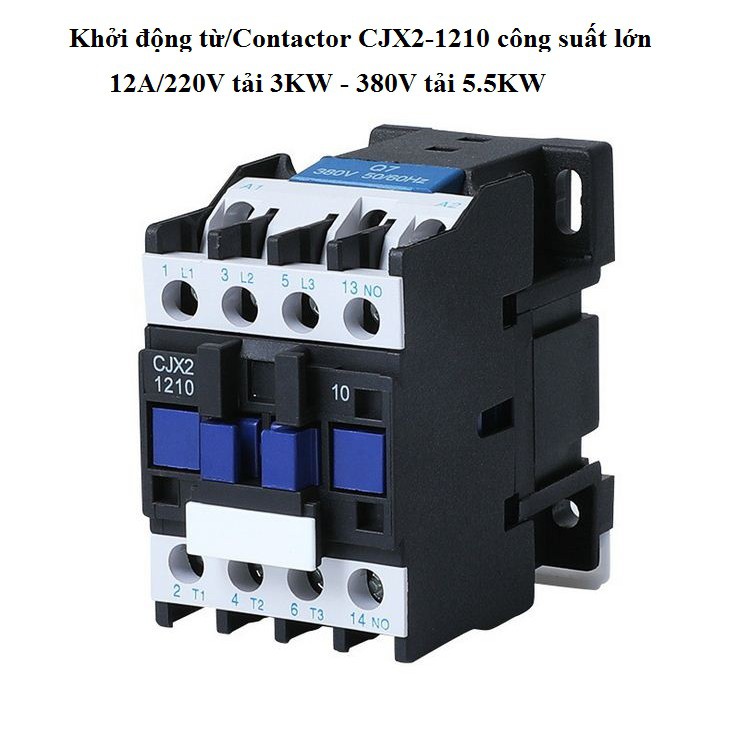 Khởi động từ AC contactor CJX2-1210 được thiết kế cho điện áp 220V/380V với dòng điện tối đa 12A thiết bị có thể được dùng kết hợp với các loại công tắc cơ hoặc công tắc hẹn giờ cũng như các loại công tắc điều khiển từ xa để đóng cắt tự động các thiết bị công suất lớn : động cợ 1 pha/3 pha, máy bơm nước 1 pha,3 pha quạt điện, hệ thống điện chiếu sáng, bình nóng lạnh, điều hoà nhiệt độ .....