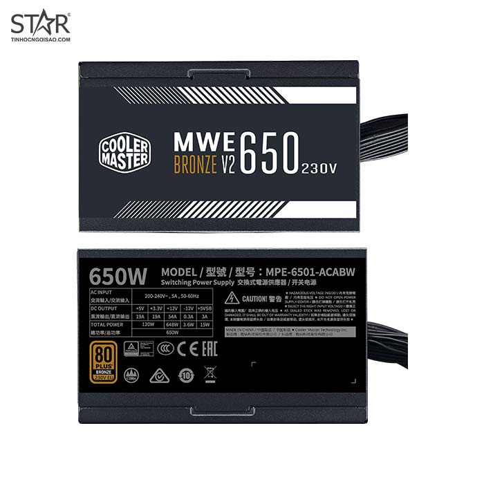 Máy tính & Laptop > Linh Kiện Máy Tính > Nguồn Máy Tính || Nguồn Cooler Master 650W MWE 650 V2 230V 80 Plus Bronze (MPE-6501-ACABW-B)Còn hàng