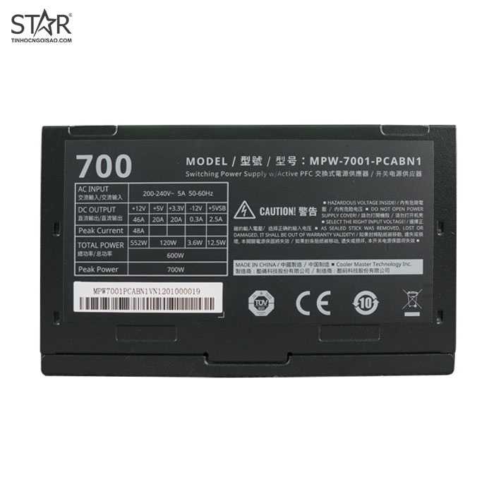 Máy tính & Laptop > Linh Kiện Máy Tính > Nguồn Máy Tính || Nguồn Cooler Master Elite PC700 700W V3 (MPW-7001-PSABN1)Còn hàng