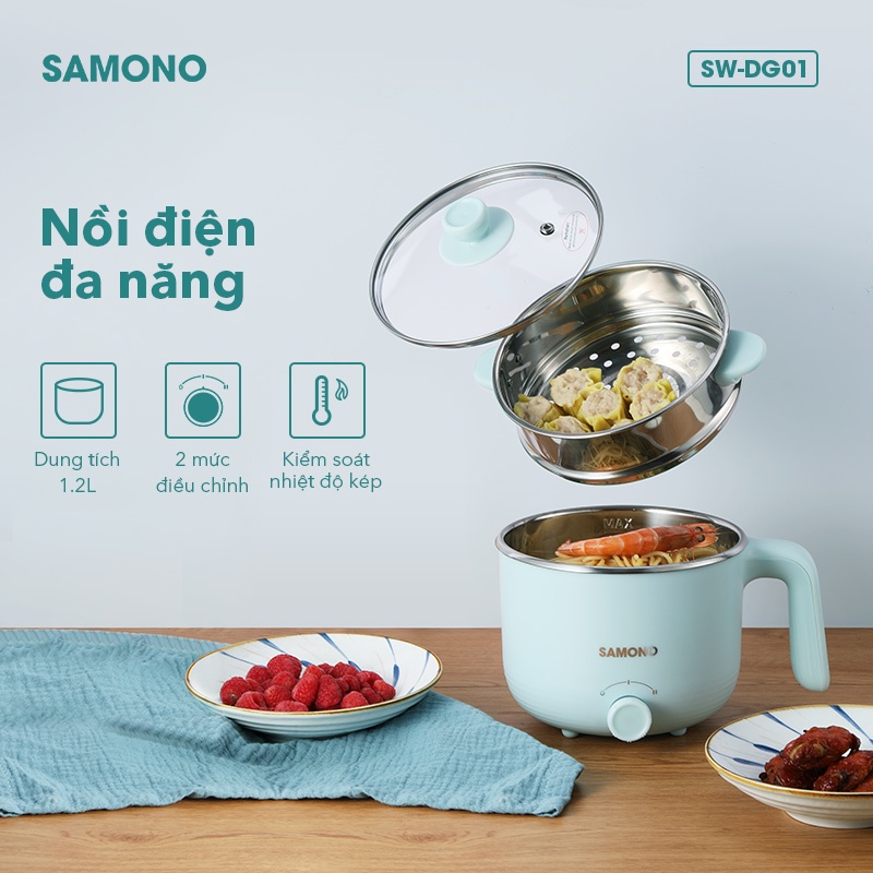 Nồi điện đa năng SAMONO SW-DG01 dung tích 1.2L có xửng hấp nấu lẩu hấp rau nấu chè tùy thích - Bảo hành 12 tháng