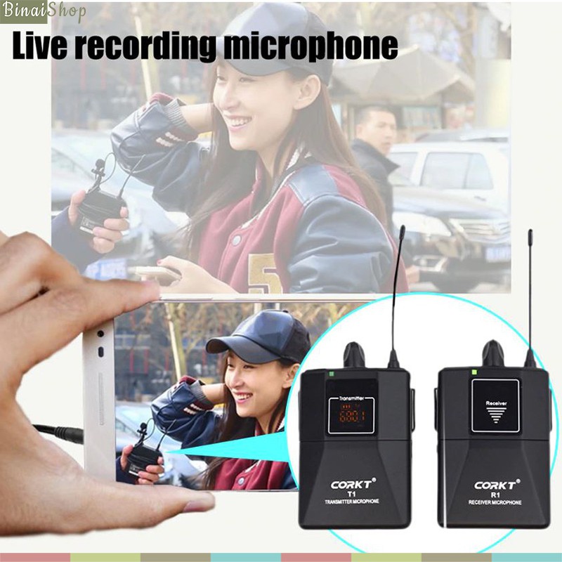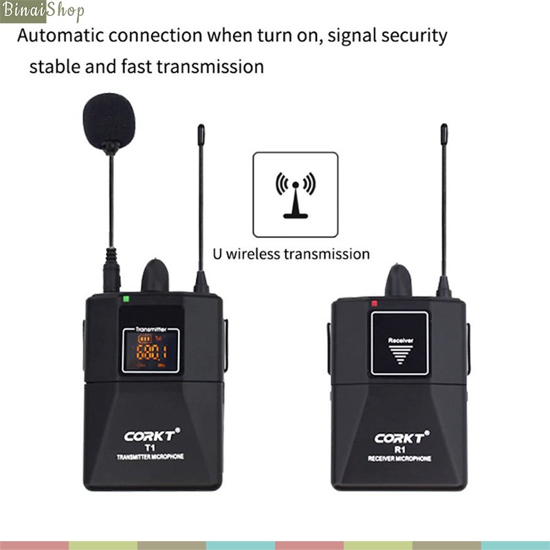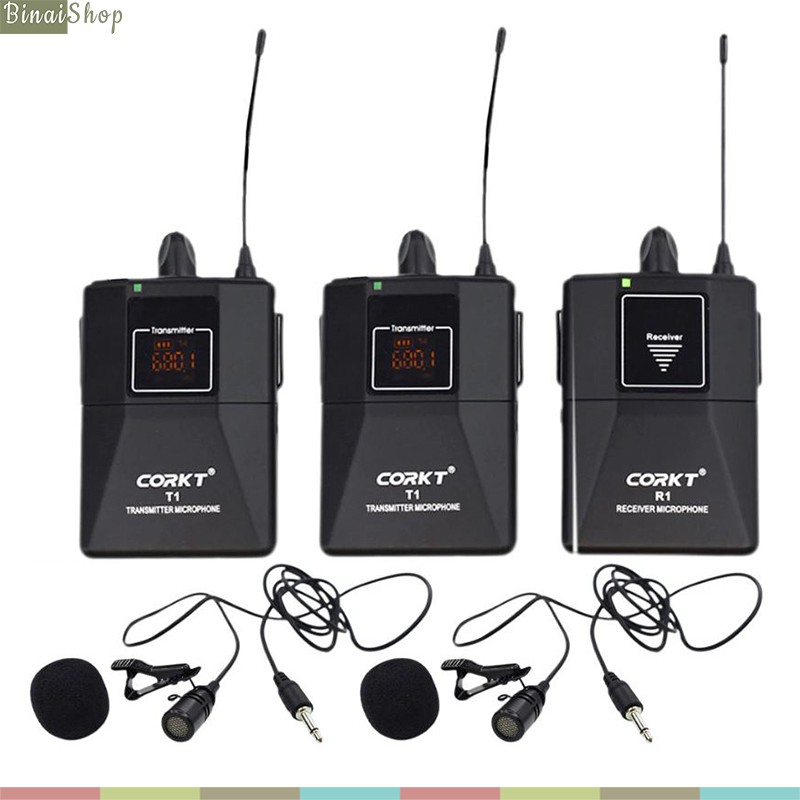 CorkT T1/CorkT T2 - Micro Gài Áo Không Dây, Sóng UHF Tần Số Riêng, Cự Ly Hoạt Động 50m, Thời Gian Hoạt Động 4h Liên Tục