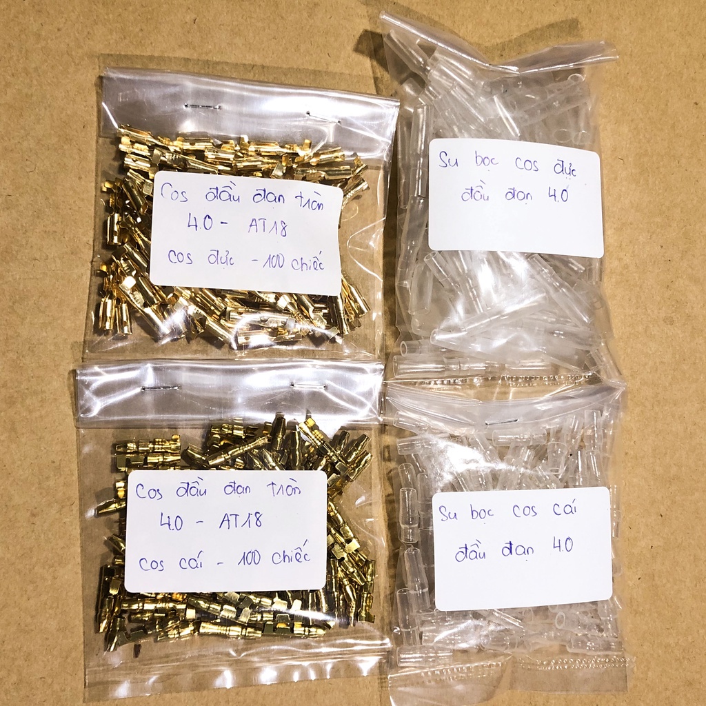 Bộ Cos Đầu Đạn Tròn 4.0 - AT18 ( 1 bịch/100 bộ)Gồm cos đồng đực + cái và xu bọc