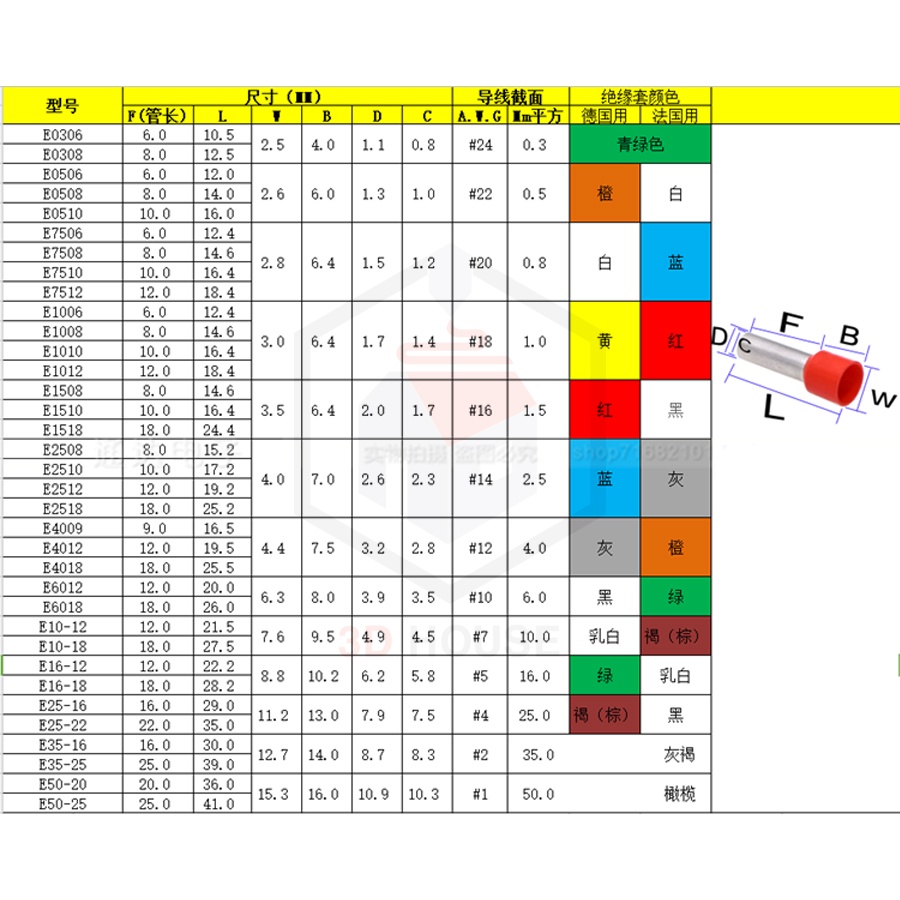 Cos Pin Bấm Dây Điện VEThông số kỹ thuật: