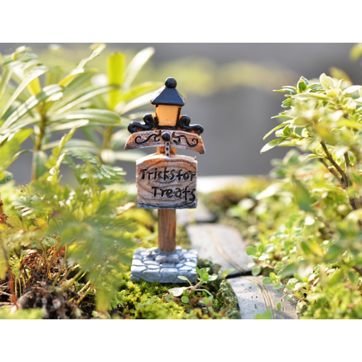 Cột đèn vườn mùa Halloween Tricks or Treats dùng trang trí tiểu cảnh, terrarium, DIY