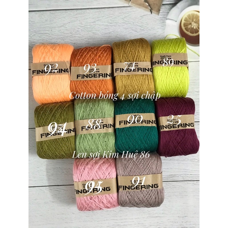 Cotton bóng 4 sợi chập ( Sợi Fingering - bảng màu đầy đủ )