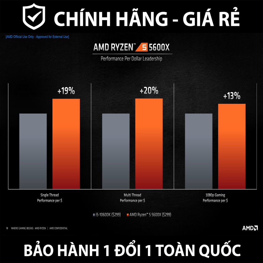 CPU AMD Ryzen 5 5600X (3.7 GHz Upto 4.6GHz, 35MB, 6 Cores, 12 Threads, Socket AM4) - Chính hãng - Bảo hành 12 tháng
