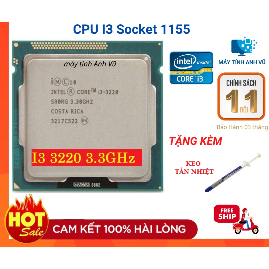 Máy tính & Laptop > Linh Kiện Máy Tính > CPU - Bộ Vi Xử Lý || [Mã 253ELSALE hoàn 7% đơn 300K] CPU chip Core i3 3220 Socket 1155 cho main H61, H67, H77, B75 Tặng keo tản nhiệtCòn hàng