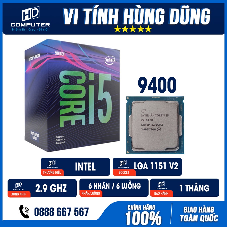 1. CPU i5 9400F (2.9Ghz, 6C6T) LGA1151 Tray BH 01 Tháng