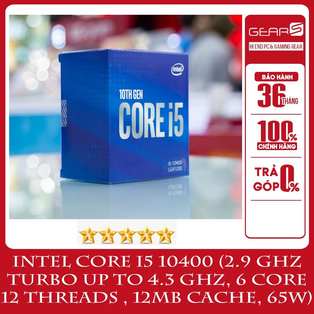 Máy tính & Laptop > Linh Kiện Máy Tính > CPU - Bộ Vi Xử Lý || CPU Intel Core i5 10400 (2.9 GHz turbo up to 4.3 GHz, 6 core 12 Threads , 12MB Cache, 65W) - Full box nhập khẩuCòn hàng