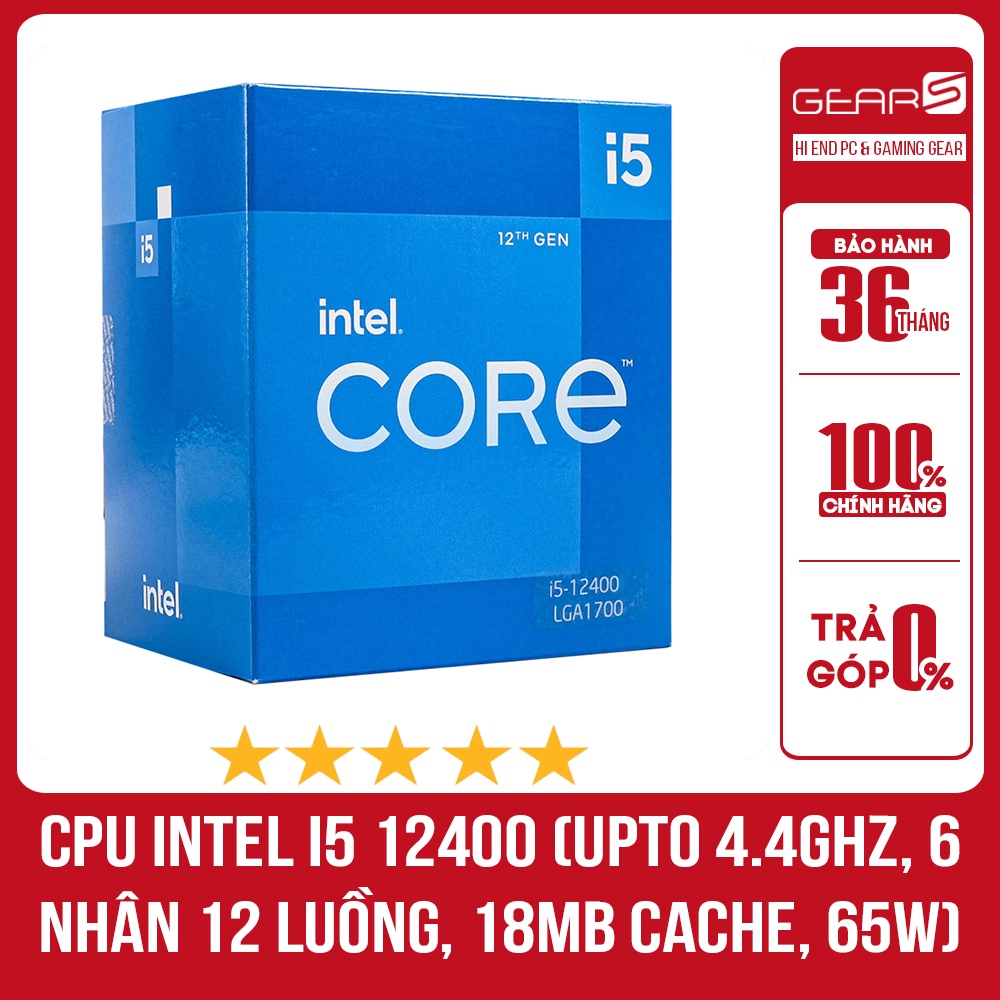 Máy tính & Laptop > Linh Kiện Máy Tính > CPU - Bộ Vi Xử Lý || CPU Intel Core i5 12400 (Upto 4.4Ghz, 6 nhân 12 luồng, 18MB Cache, 65W) - Full box BH 36 ThángCòn hàng
