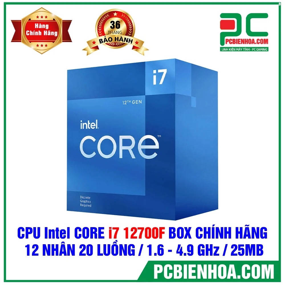 Máy tính & Laptop > Linh Kiện Máy Tính > CPU - Bộ Vi Xử Lý || CPU Intel Core i7-12700F (Up To 4.80GHz, 12 Nhân 20 Luồng, 25M Cache, Alder Lake)Còn hàng
