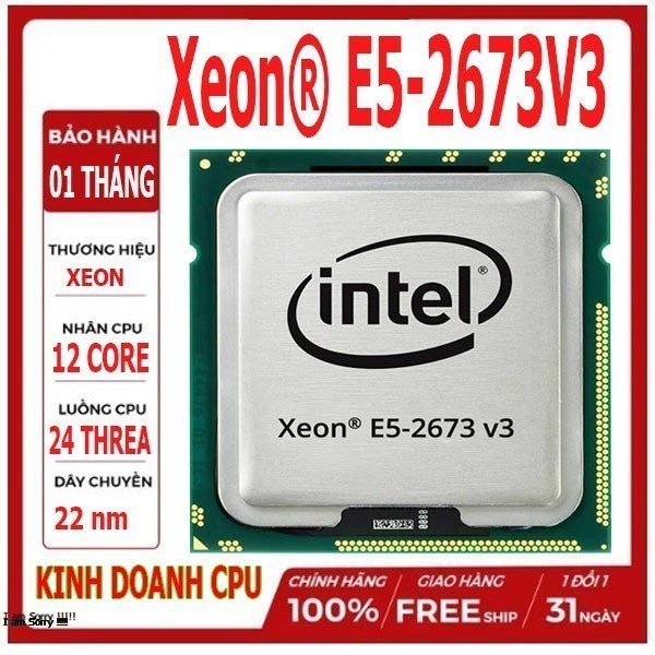 Máy tính & Laptop > Linh Kiện Máy Tính > CPU - Bộ Vi Xử Lý || CPU Intel Xeon E5-2673V3 (2.4GHz turbo up to 3.2GHz, 12 nhân 24 luồng, 30MB Cache, 110W) – Socket Intel LGA 2011-v3Còn hàng