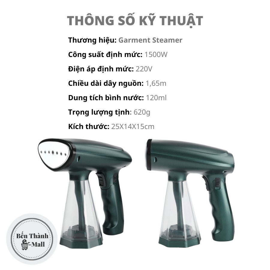 - Bàn là Garment Steamer có công suất cực mạnh 1500W, đáp ứng hầu hết nhu cầu là ủi quần áo