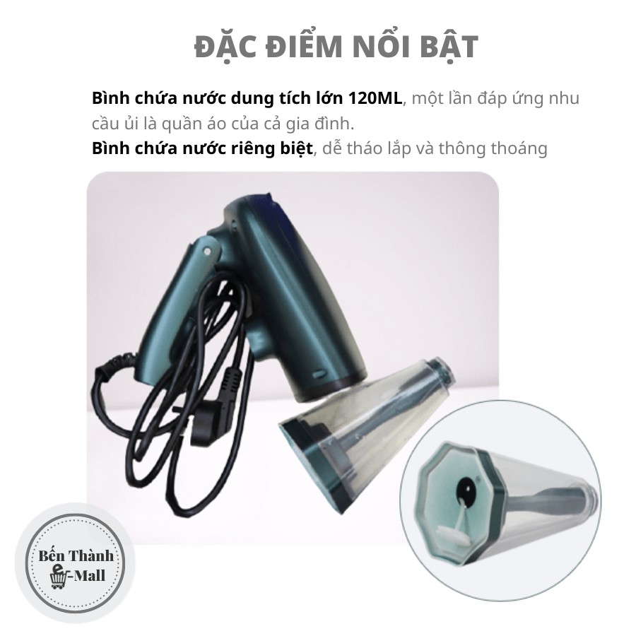 - Bình chứa nước dung tích lớn 120ML, một lần đáp ứng nhu cầu ủi là quần áo của cả gia đình