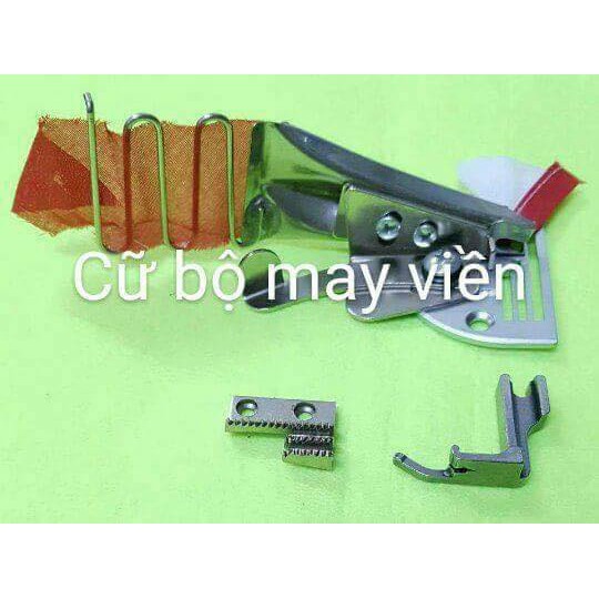 cử bộ sử dụng để chạy viền cuốn 2 mép của máy 1 kim công nghiệp.Cách sử dụng: khi sử dụng bộ cử này khách hãy thay toàn bộ răng cưa, mặt nguyệt, chân vịt đang may bình thường ra và lắp răng cưa, mặt nguyệt, chân vịt của bộ cử A10 này vào và cho dây viền vào ống cử là có thể may được 1 cách dễ cử bộ A10 này có size từ: 20-50mm