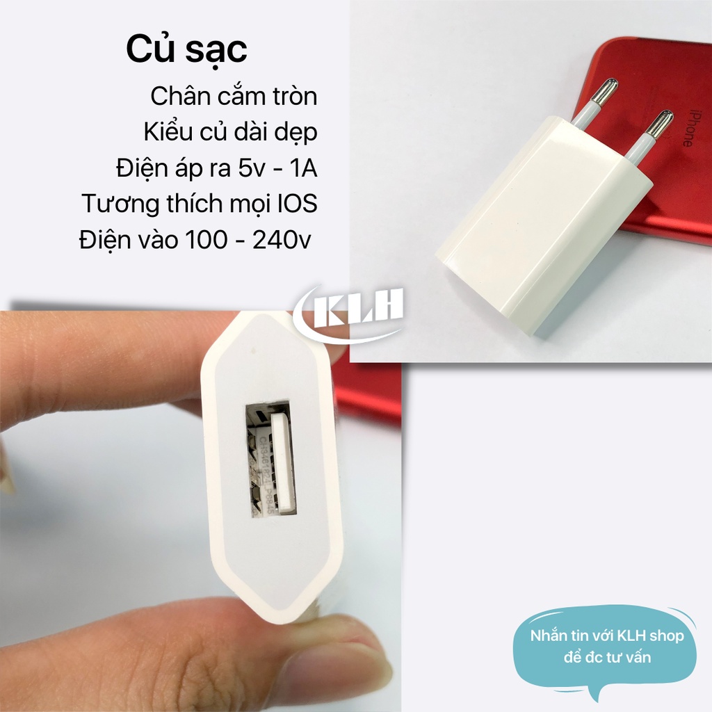 Giới thiệu Bộ củ cáp sạc nhanh cho điện thoại iphone 5, 6, 7, 8, X, 11 cóc sạt dẹp dây dài 1m tương thích mọi iphon - KLH shop