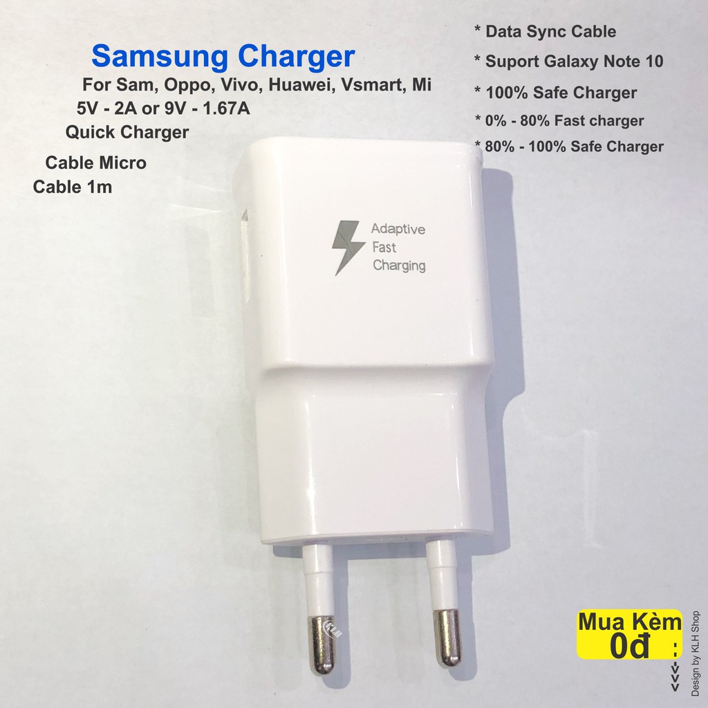 Điện Thoại & Phụ Kiện > Phụ kiện > Cáp, sạc & bộ chuyển đổi > Bộ sạc || Bộ củ cáp sạc nhanh dành cho Samsung Note 5 chân Micro, công nghệ sạc nhanh Quick chager không kén máy KLHCòn hàng
