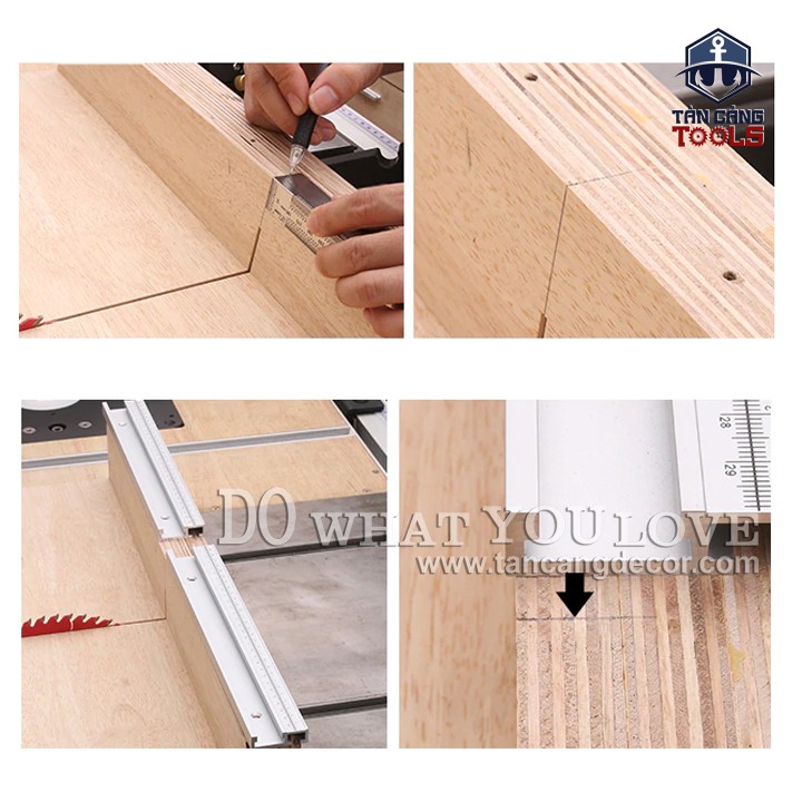 - Sản phẩm thường kết hợp với thanh ray trượt bàn cưa có in thước trên ray.