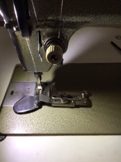 LƯU Ý: với những loại lai to như 1cm, 1.5cm, 2cm, 2.5cm nên dùng cuộn nhựa dán đế chân vịt để dán dưới đế chân vịt như hình để ép vải ko bị vặn xoắn khi cuốn.