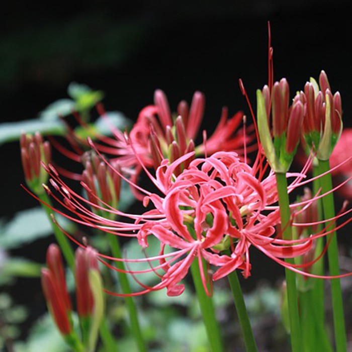 Hoa bỉ ngạn thuộc họ cây thân thảo, lâu năm, thân củ ( giống củ hành tây ). Bên ngoài củ có những lớp vẩy sẫm màu. Hoa bỉ ngạn nở vào tháng 7 đến tháng 9 hằng năm. Cây hoa sẽ mọc thẳng lên trời, chia thành 4- 6 cành hoa nhỏ. Mỗi cành có chiều cao khoảng 60cm. Lá cây hoa bỉ ngạn hì giống lá của cây tỏi. Những cánh hoa bỉ ngạn tương đối nhỏ, thon và dài. Những cánh hoa được uốn cong rất đẹp mắt.