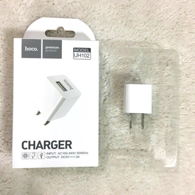 Cốc sạc 5V/1A HOCO UH102 chính hãng cao cấp, hỗ trợ sạc nhanh cho hiệu suất cao.=> Cốc sạc Hoco 5V-1A UH102 được thiết kế nhỏ gọn, tiện lợi dễ dàng mang theo tới bất kỳ nơi đâu nhằm đảm bảo những thiết bị di động của bạn luôn sẵn sàng để sử dụng. Cốc sạc cho điện áp đầu ra ổn định, an toàn và không làm cho pin của thiết bị bị chai, phồng hay hỏng. Chân tiếp xúc làm bằng hợp kim cao cấp, tiếp điện tốt giúp giảm thời gian sạc. Hệ thống mạch bảo vệ điện áp thông minh bên trong sạc rất an toàn, tin cậy tránh những nguy hại như cháy, chập khi nạp điện.