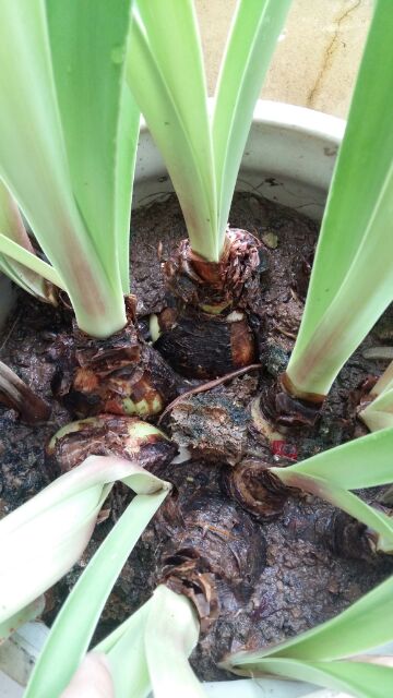 Củ lan huệ ta có sẵn rễ và lá hoa màu đỏ