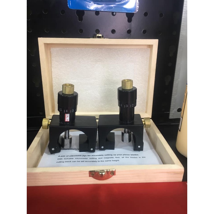 Cữ lắp lưỡi bào bộ 2 cái giúp đặt lưỡi bào nhanh chóng và chính xác với các thiết bị ghép bằng nam châm. Các đầu kẹp giữ dao chặt chẽ ở vị trí trong khi cả hai tay được tự do để điều chỉnh các đầu kẹp và đầu cắt. Giữ dao trong sự liên kết hoàn hảo trong khi thiết lập và phù hợp với dao từ 12 "đến 24".