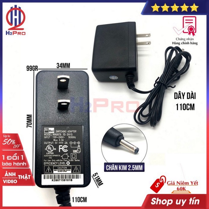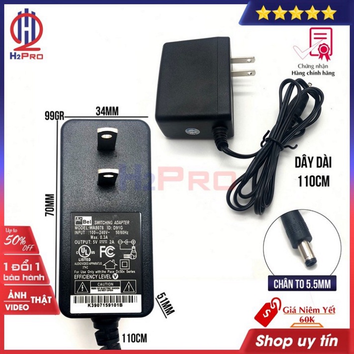 Giới thiệu Củ nguồn 5v 2a ACBEL H2Pro cao cấp-đủ dòng-bền bỉ-dây dài 110cm (1 củ), cục nguồn 5v 2a dùng cho tv box, camera