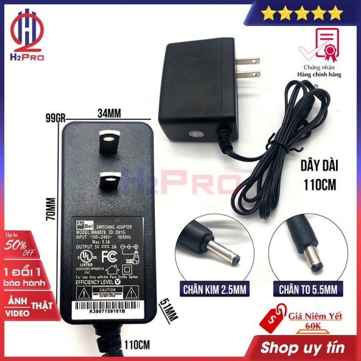 Củ nguồn 5v 2a ACBEL H2Pro cao cấp-đủ dòng-bền bỉ-dây dài 110cm (1 củ), cục nguồn 5v 2a dùng cho tv box, camera (chân kim hoặc chân to)- Thương Hiệu : ACBEL