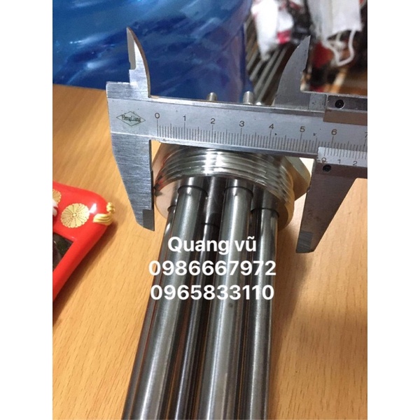 Điện trở nồi hơi ren 58 được làm bằng inox 304 không gỉ, sáng bóng, dễ vệ sinh. Ngay cả khi thường xuyên hoạt động trong môi trường hợp chất hữu cơ, muối cũng không lo thanh nhiệt bị oxy hóa. Cấu tạo thanh điện trở nhiệt gồm 3 lớp:Lớp ngoài cùng là kim loại dẫn nhiệt inox 304