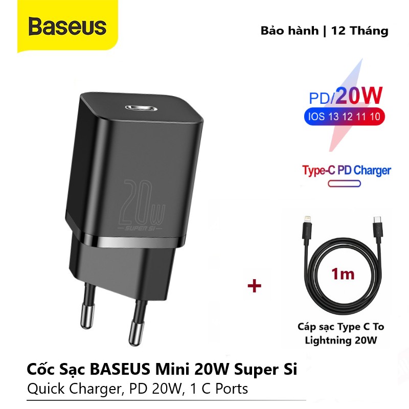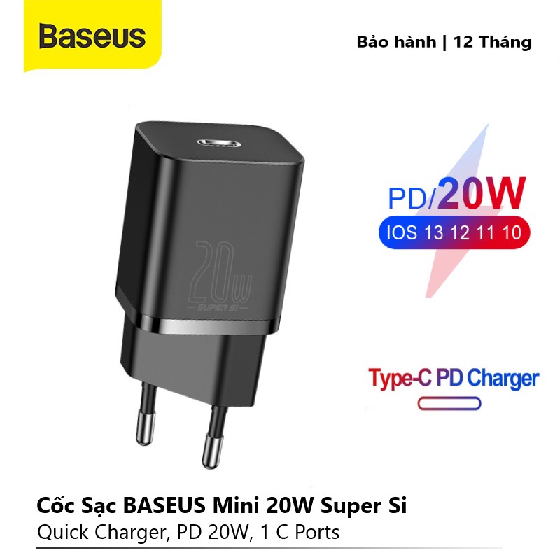 Điện Thoại & Phụ Kiện > Phụ kiện > Cáp, sạc & bộ chuyển đổi > Bộ sạc || Củ Sạc Nhanh Baseus Super Si Mini USB C 20W, Hỗ Trợ QC3.0 PD sạc nhanh cho iphone 12/ dây sạc 20WCòn hàng