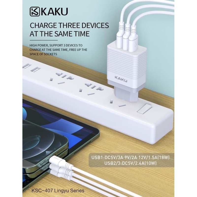 Giới thiệu Củ sạc nhanh chính hãng Kaku mã KSC-407 Có 3 cổng USB Giá 90k bảo hành: 1 năm