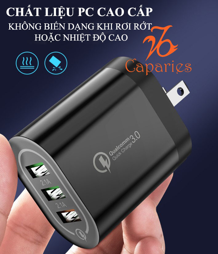Củ Sạc 3 USB 18W Nhanh Quick Charge 3.0 - Chính Hãng CAPARIES VIỆT NAM