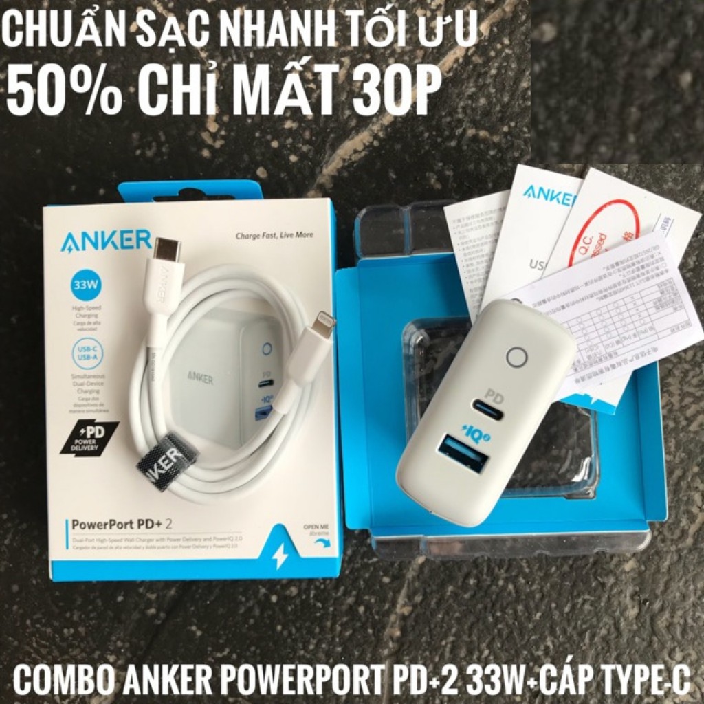 Điện Thoại & Phụ Kiện > Phụ kiện > Cáp, sạc & bộ chuyển đổi > Bộ sạc || Củ sạc Anker PowerPort Pd+2 33w , Usb-c PD, PowerIQ2.0 - A2626 sạc nhanh IPhone Android - tistoreCòn hàng