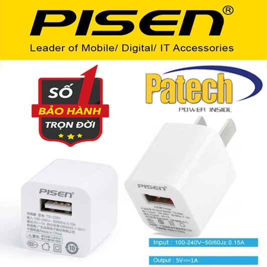Củ sạc chính hãng Pisen 1A ♥️Freeship♥️ Cục sạc chính hãng Pisen
