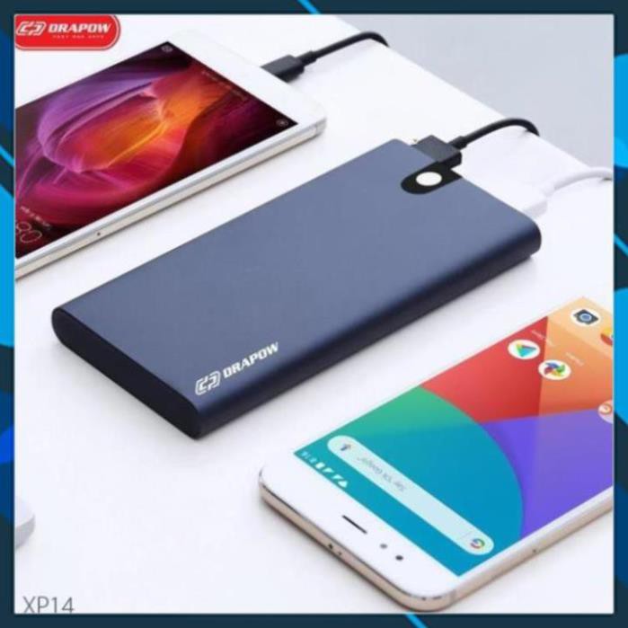 Củ sạc dự phòng Powerbank 10000mAh Xp14 nhôm nguyên khối - 2 cổng sạc - Chính hãng Drapow - BH 12 tháng Giá Rẻ