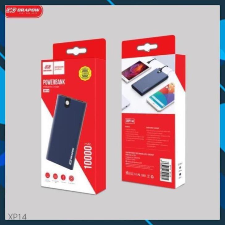 Điện Thoại & Phụ Kiện > Pin sạc dự phòng > 10000 - 20000mAh || Củ sạc dự phòng Powerbank 10000mAh Xp14 nhôm nguyên khối - 2 cổng sạc - Chính hãng Drapow - BH 12 tháng Giá RẻCòn hàng