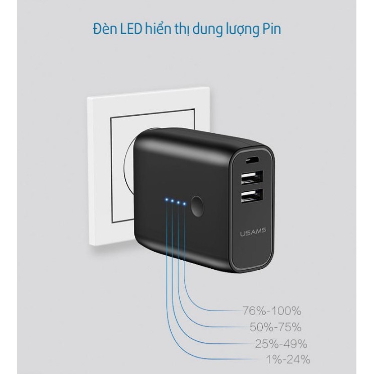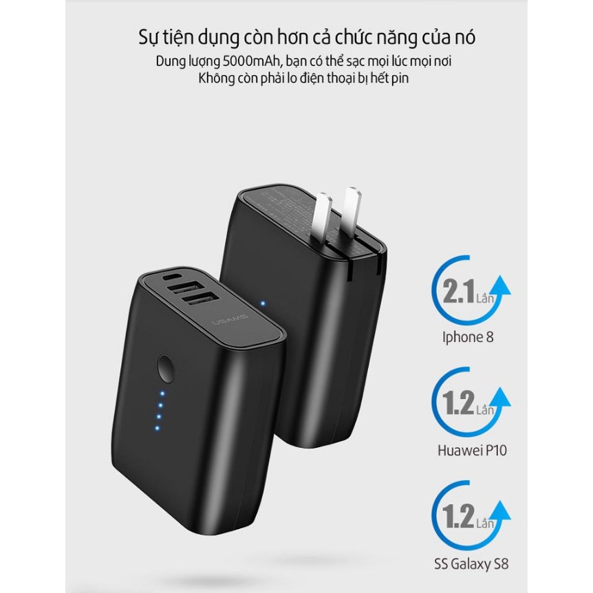 Củ sạc kiêm pin dự phòng 2in1 USAMS 5000mAh - Home and Garden