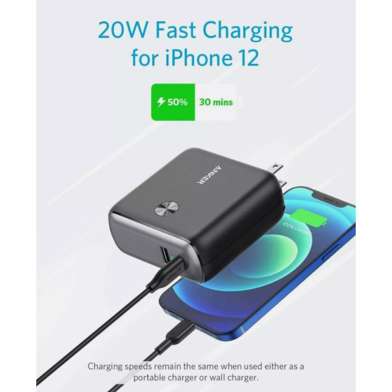 Củ Sạc Kiêm Pin Dự Phòng Anker 10.000mAh - A1623, Sạc Nhanh PD 20W Cho iPhone,iPad,QC 3.0