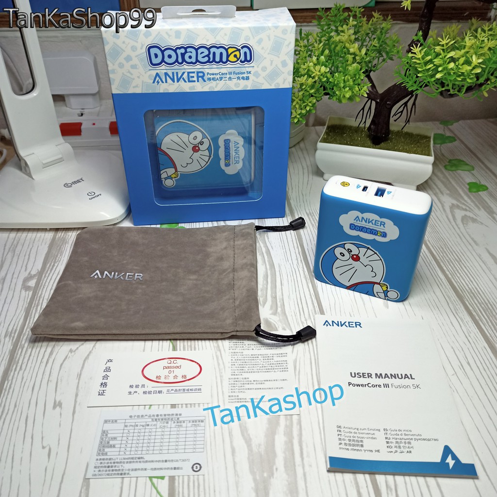 Củ Sạc Kiêm Pin Dự Phòng Anker x Doraemon 5.000mAh -A1624 Sạc Nhanh IQ3 PD 18w + QC3.0 cho iphone và Androi Fusion