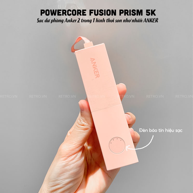 Sạc dự phòng Anker 2 trong 1 hình thỏi son nhỏ nhắn, cực nữ tính và tiện dụng - #ANKER𝐏𝐨𝐰𝐞𝐫𝐂𝐨𝐫𝐞 𝐅𝐮𝐬𝐢𝐨𝐧 𝐏𝐫𝐢𝐬𝐦 𝟓𝐊
