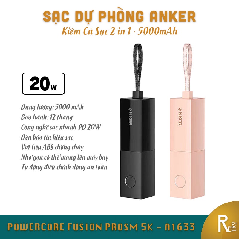 Giới thiệu Củ Sạc Kiêm Pin Dự Phòng Thỏi Son Anker A1633 5000mAh, 1 Cổng Type C Sạc Nhanh 20W Cho iPhone 13 Pro Max 12 Pro 11 Xs 8