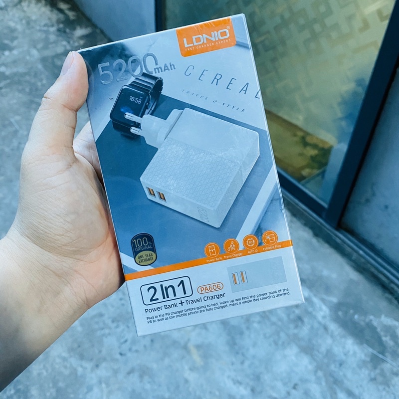 củ sạc kiêm sạc dự phòng 5200mAh chính hãng LDNIO mã PA606 2 cổng sạc cực xịn