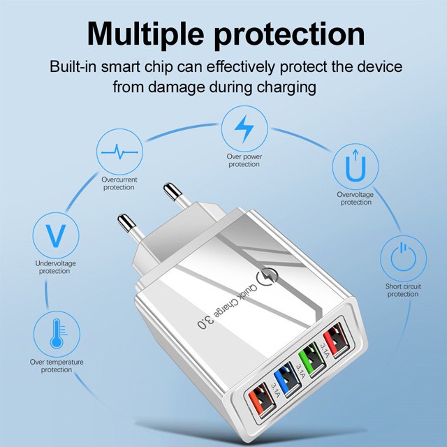 - Màu đen - QC3.0 : có 1 đầu hỗ trợ Qualcomm QC 3.0 và 3 đầu sạc nhanh 3.1A (Có hỗ trợ sạc nhanh Qualcomm)