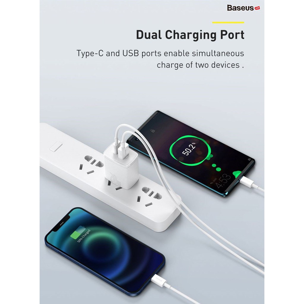 Củ sạc nhanh 20w cho iphone ipad samsung xiaomi oppo đầu sạc typec và usb qc 3.0 thiết kế nhỏ gọn chính hãng baseus