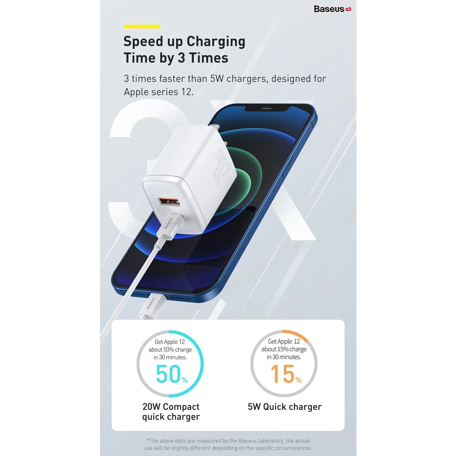 Củ sạc nhanh 20w iPhone và Android 2 cổng sạc typec và usb công nghệ sạc nhanh pd 3.0 và qc 3.0 chính hãng baseus