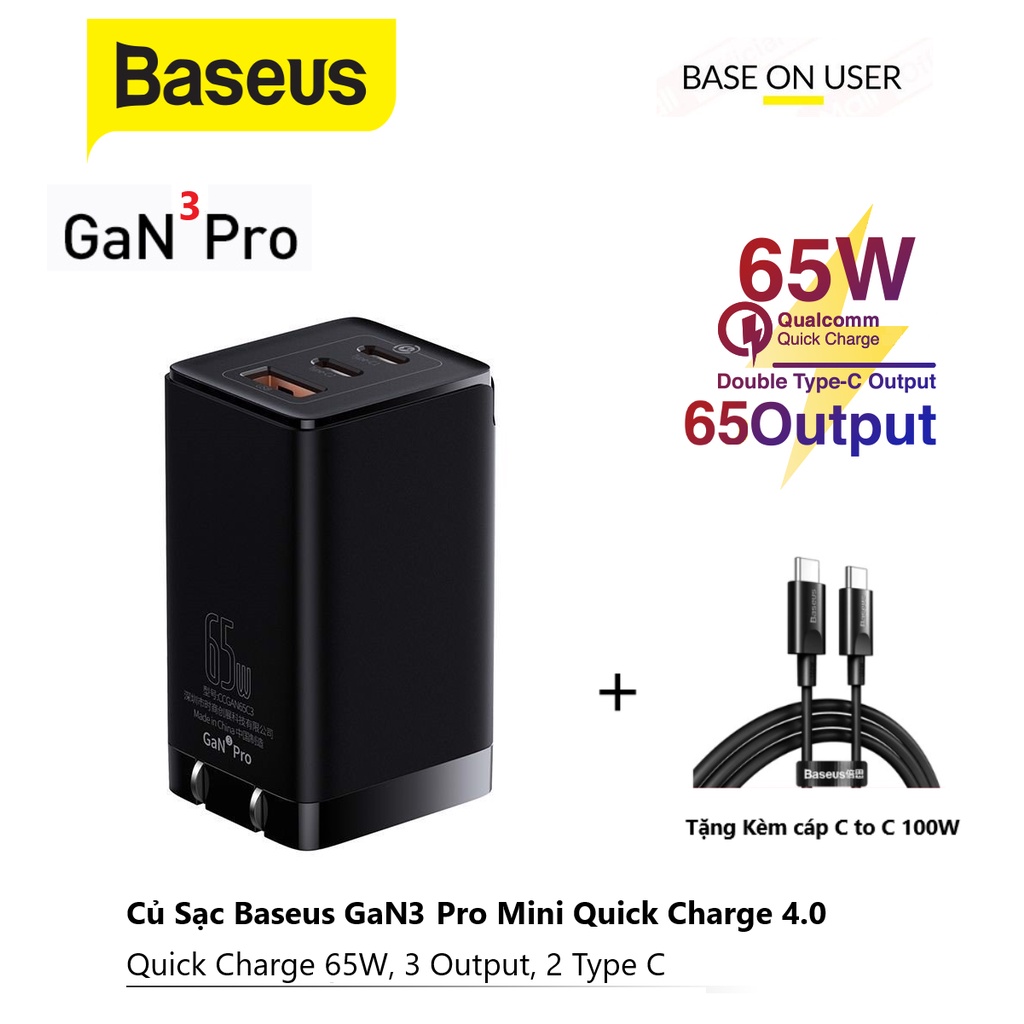 Điện Thoại & Phụ Kiện > Phụ kiện > Cáp, sạc & bộ chuyển đổi > Bộ sạc || Củ sạc nhanh Baseus GaN 65W / 45W / Gan3 pro USB Quick Charge 4.0 3.0 PD cho Smartphone/ Tablet/ Ipad/ Macbook/ LaptopCòn hàng