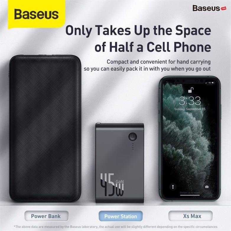 Củ sạc nhanh Baseus GaN 10000mah kiêm pin sạc dự phòng Power Station 45W 2 in 1 PD/QC3.0