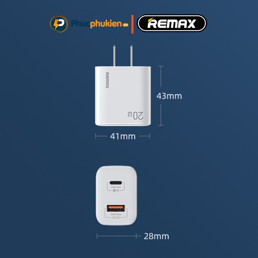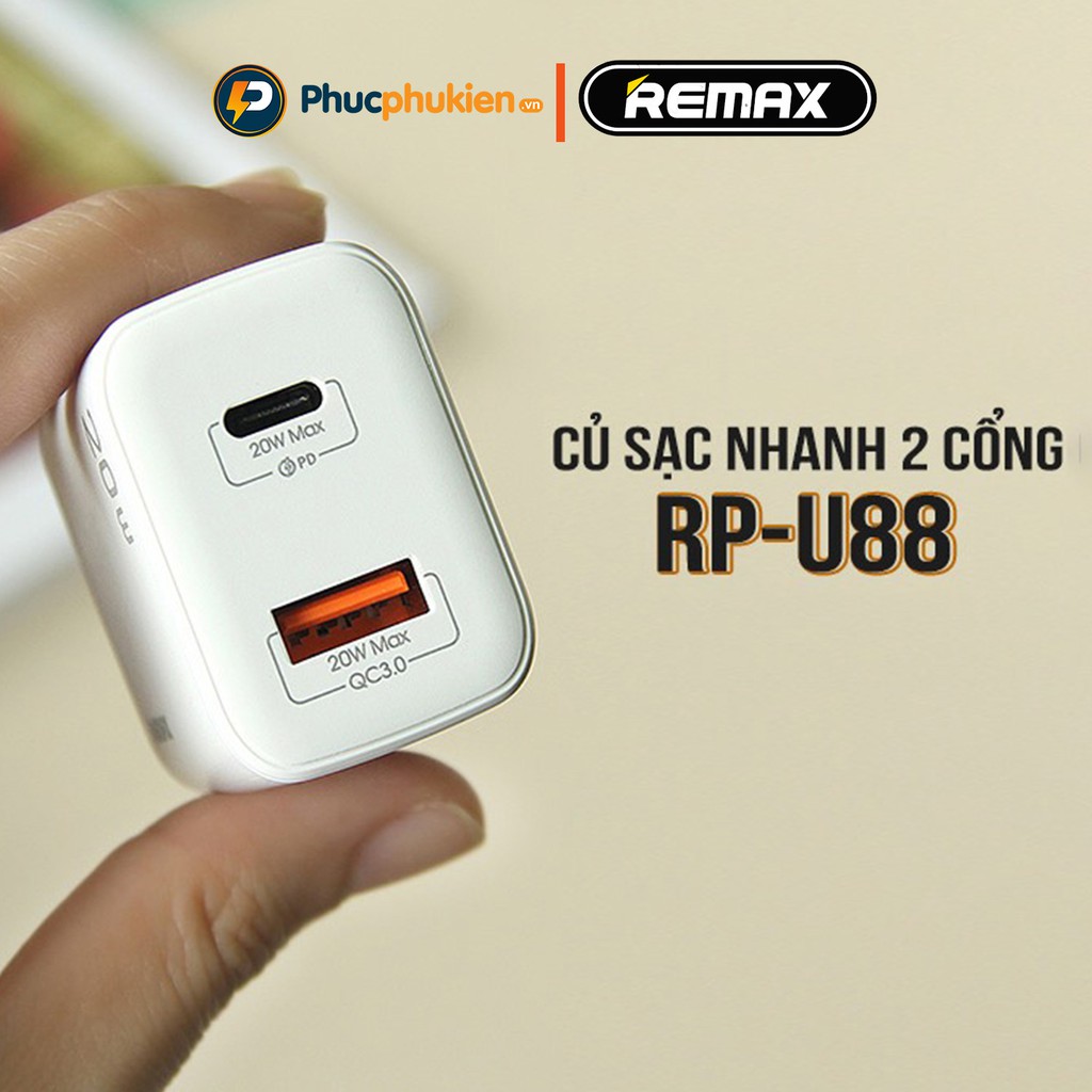 Củ sạc nhanh iPhone 20w chính hãng Remax U88 2 cổng sạc nhanh PD3.0 và QC3.0 sạc đầy 50% pin trong 30 phút Phúc Phụ Kiện