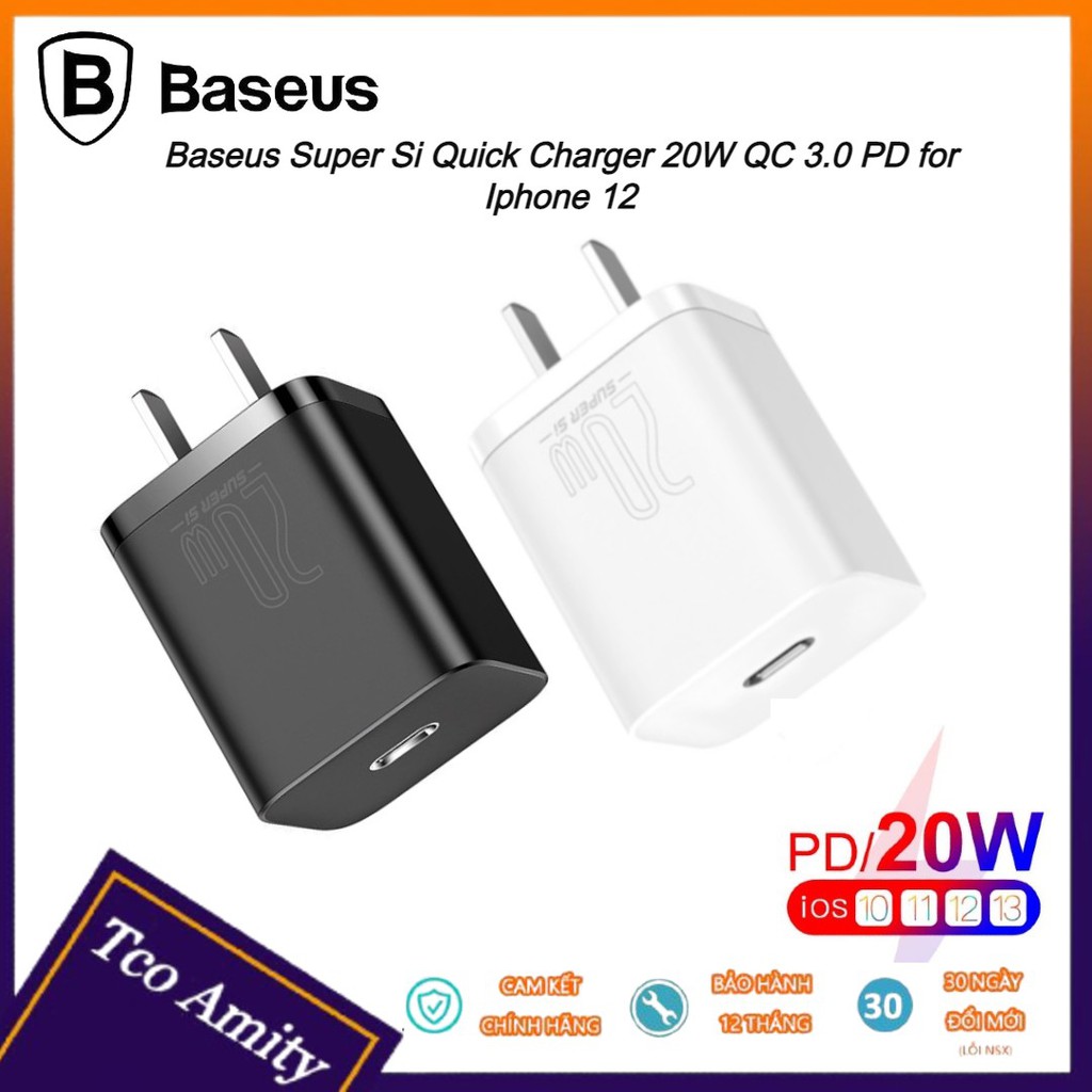 Củ sạc nhanh iPhone - PD 20W Baseus - Cổng Type C - Sạc đầy 50% pin sau 30 phút - Chính hãng - Bảo hành 12 tháng